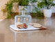 Crafted from ethically sourced materials, this sustainable cake platter is designed for both beauty and practicality. The sturdy wooden tray provides stability, while the marble platter ensures durability. The glass dome protects delicate baked goods, making it ideal for serving cakes, cheese platters, or fruit displays with refined elegance.