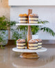 Elevate your hosting experience with this exquisite white marble & iron 2-tier cake stand, a masterpiece that seamlessly blends sophistication with functionality. Whether you’re displaying delicate pastries, indulgent cakes, or savoury treats, this handcrafted artisan piece is the perfect centrepiece for any occasion.