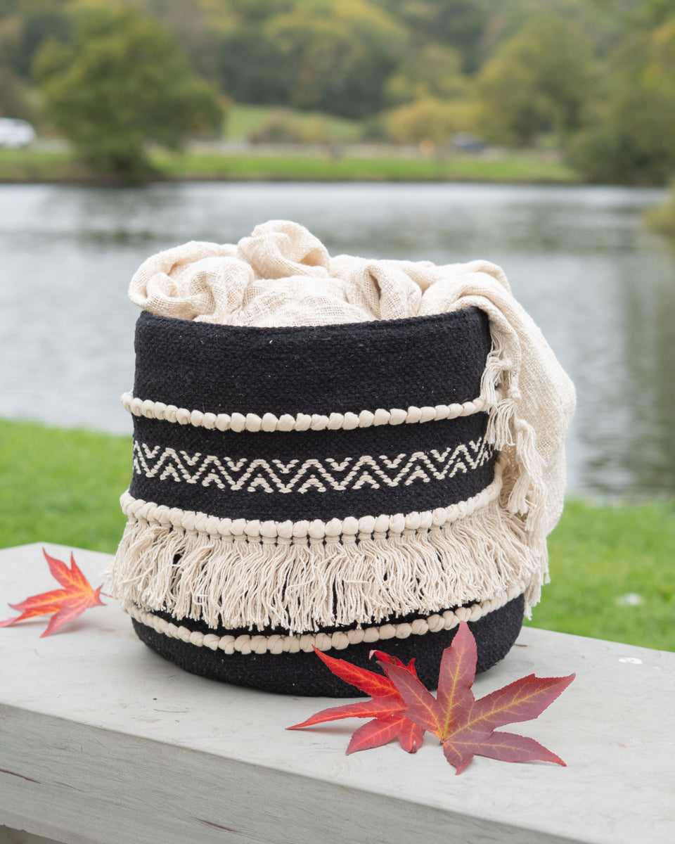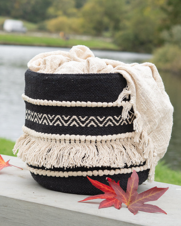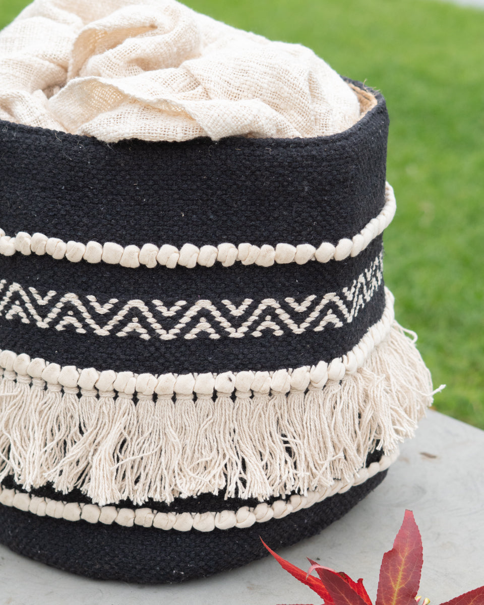 Why Choose the Handwoven Black Monotone Tasselled Storage Basket?