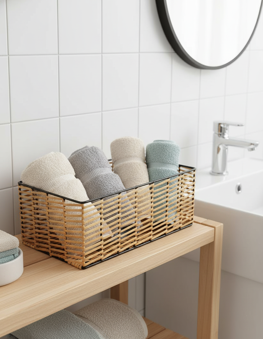 - Bathroom – A stylish way to store toiletries, hand towels, and beauty essentials.