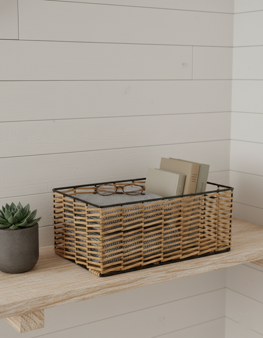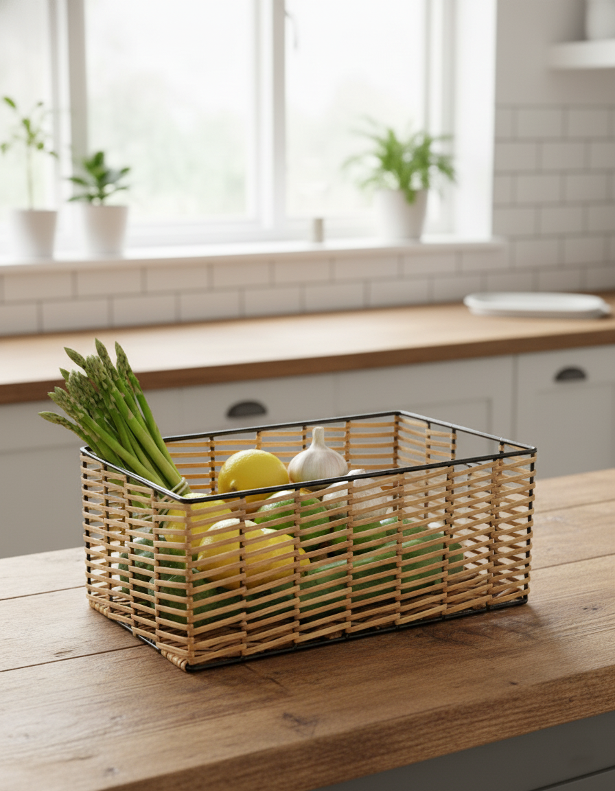 Bring warmth, craftsmanship, and functionality into your home with this classic handwoven rectangular iron and cane storage box. A perfect blend of sustainability, artistry, and practicality—order yours today and enjoy beautifully organised spaces!