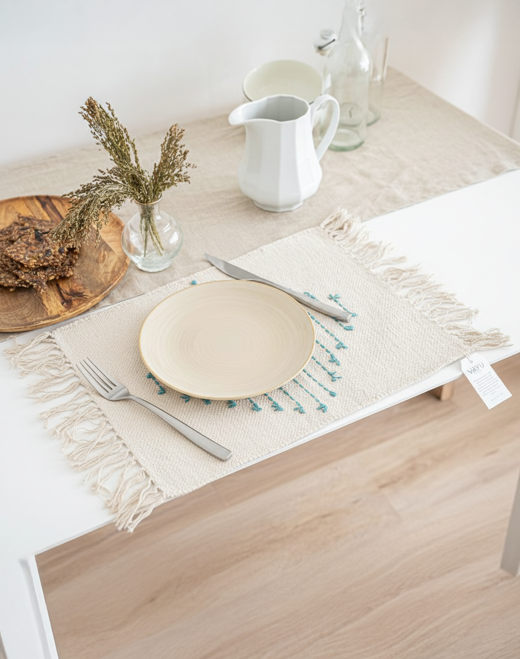 Each placemat is meticulously crafted using traditional handloom techniques, passed down through generations of Indian artisans. The intricate weaving process takes time, precision, and dedication, ensuring a unique, high-quality finish. Unlike mass-produced textiles, these handmade placemats carry the warmth and authenticity of human touch, making each piece truly one of a kind.