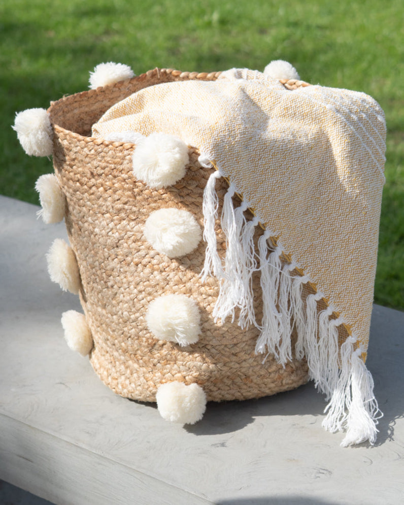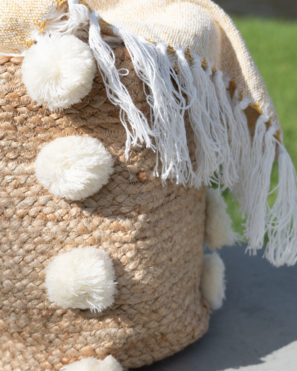 Why Choose the Hand Braided Pom Pom Jute Storage Basket – Beige?