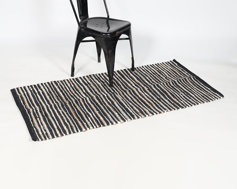 Handwoven Jute Striped Black Rug – Eco-Friendly Luxury for Modern Homes