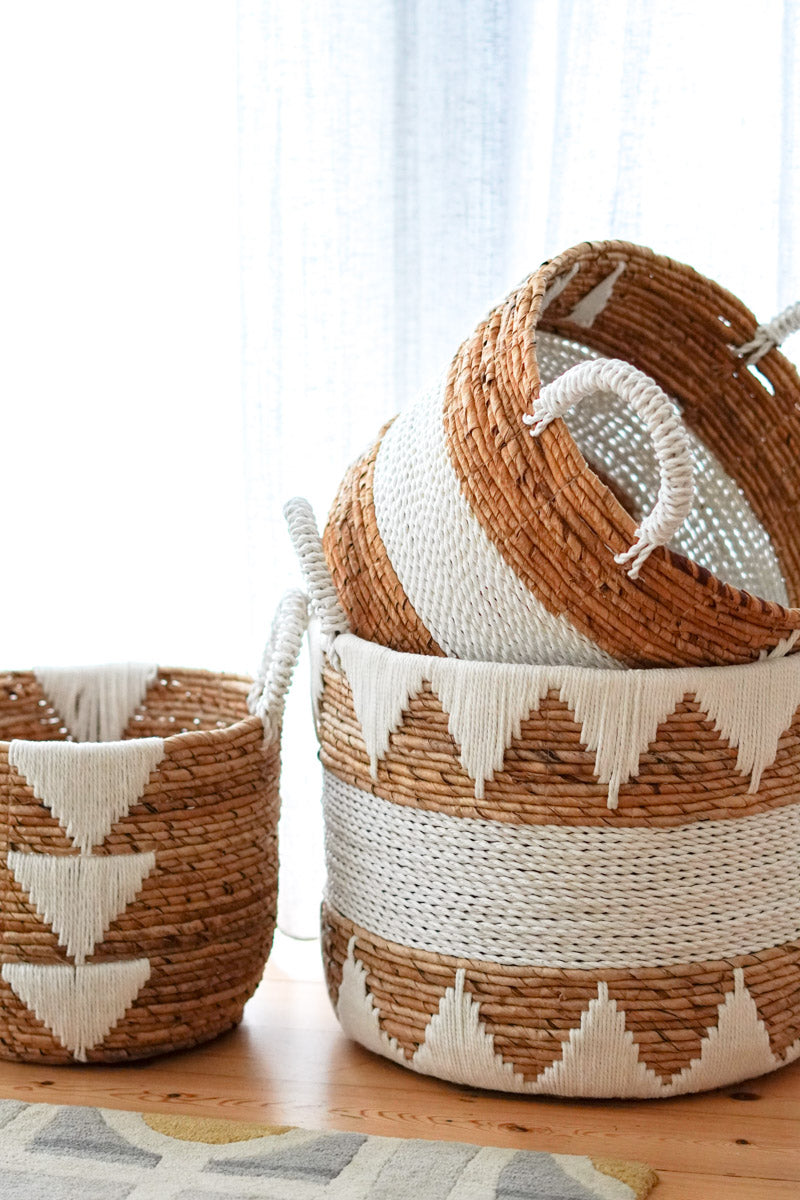 Every basket in this set is lovingly handcrafted using banana leaves, a renewable and sustainable material that brings natural charm and texture to your home. The addition of intricately woven macrame detailing elevates the design, showcasing the artisans’ expertise and creativity. Each piece is unique, reflecting the individuality and care poured into its creation.