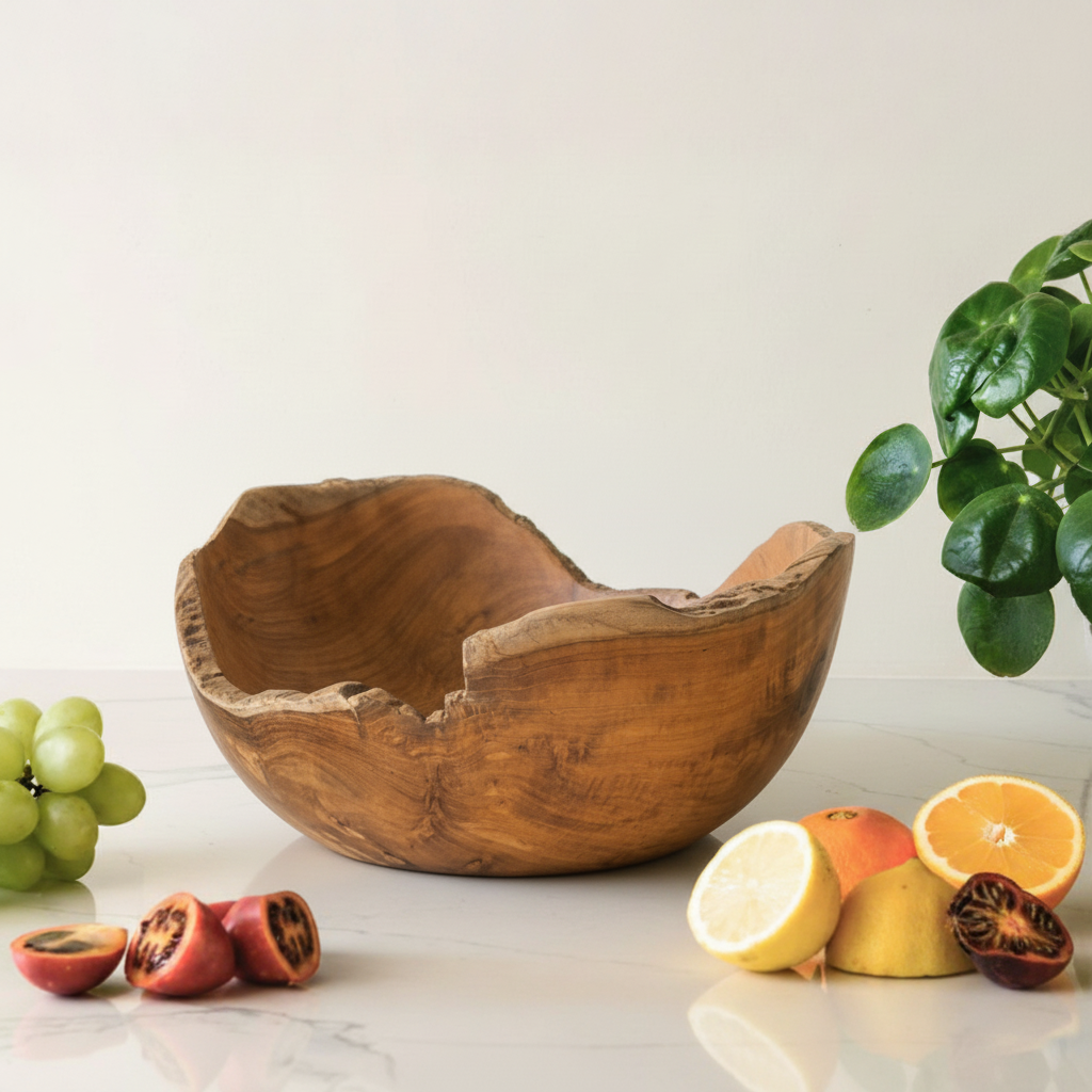 Crafted from premium teak wood, this bowl is designed for longevity and functionality. Teak is known for its exceptional durability, resistance to moisture, and natural oils that protect the wood from cracking and warping. Unlike other wooden bowls, the Tree Root Bowl resists bacteria and odours, maintaining a hygienic surface even after frequent use. The sturdy construction means it can handle both light and heavy-duty tasks without losing its integrity, making it suitable for everyday meals or special occasions.