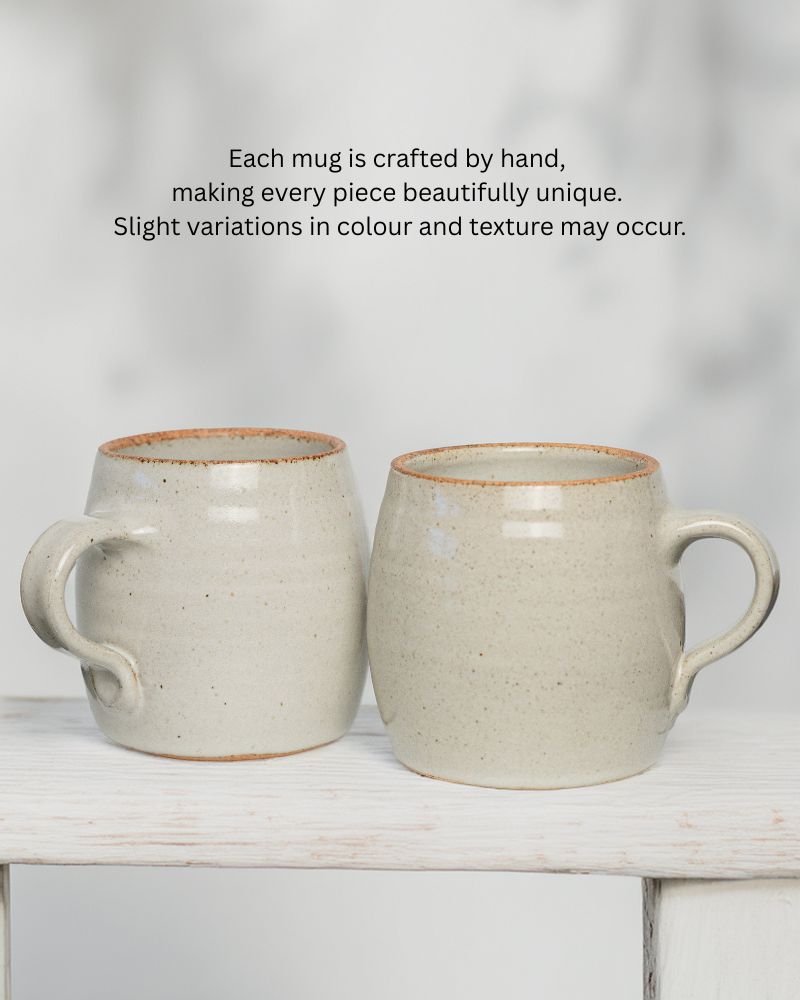 This handcrafted mug is the result of time-honoured pottery techniques, where skilled artisans meticulously shape and refine each piece with care. The process begins with natural clay, which is carefully kneaded to remove impurities, then shaped on a traditional potter’s wheel. Once formed, the mug is left to dry before undergoing a high-temperature firing process, ensuring strength, durability, and a unique frosted finish.