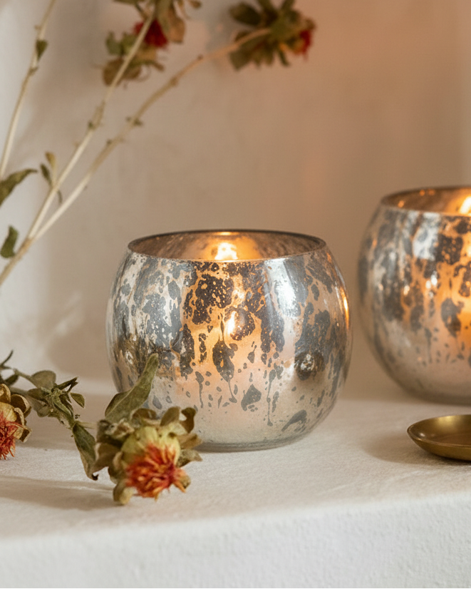 This dome-shaped glass votive is designed to enhance the ambiance of any room. Whether placed on a side table, shelf, or as part of a centrepiece, it casts a soft, enchanting glow that adds a magical touch to your home. Its abstract design and old-world charm make it a perfect addition to spaces that yearn for a blend of tradition and modernity.