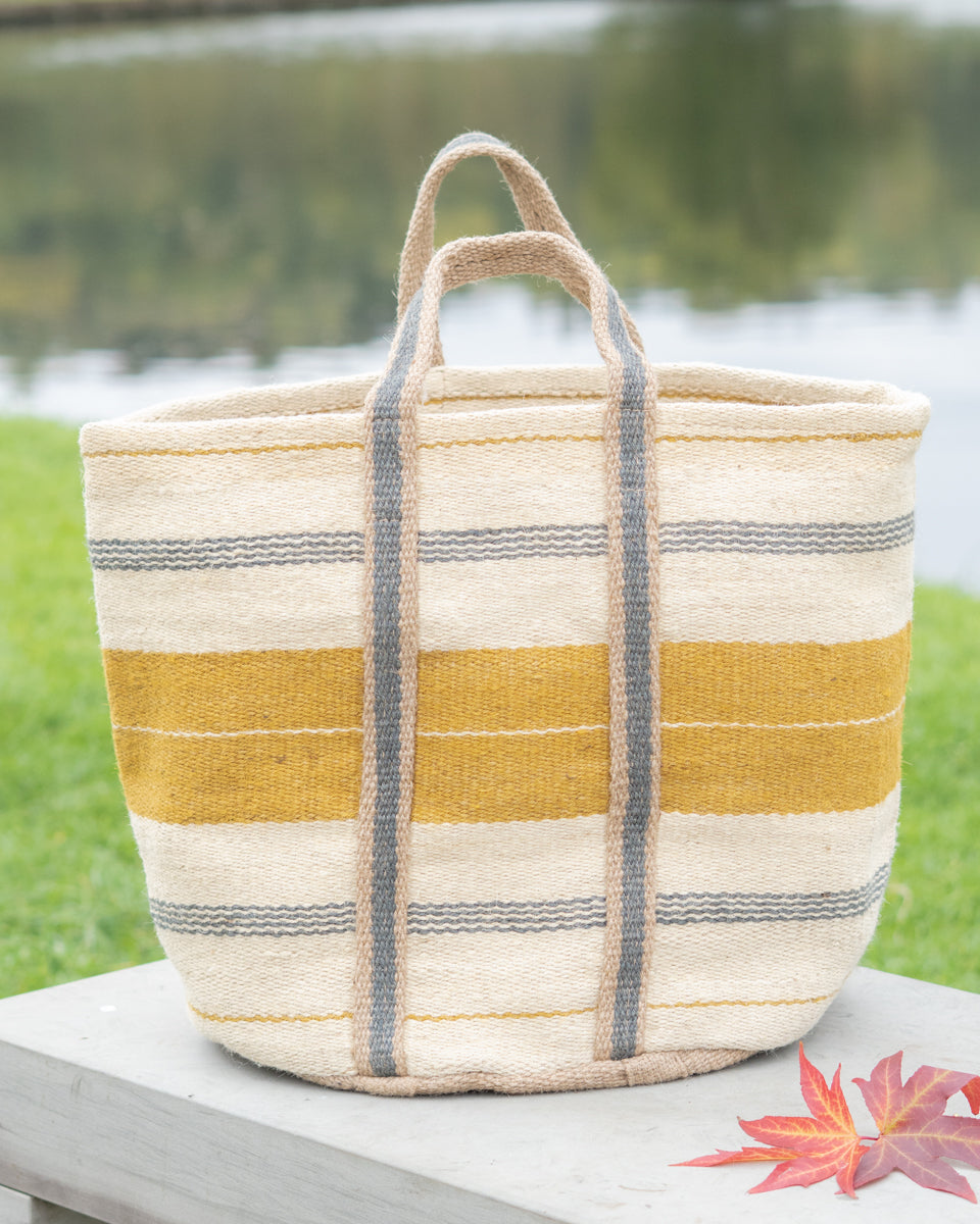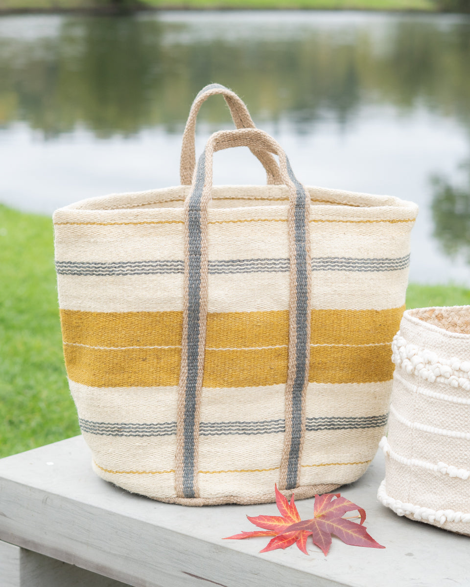 Flaunting grounded charm in its most natural form, this striped Storage Basket with Handles is ingrained with a sweet touch of rustic beauty. Carrying the goodness of jute, this bag has strong and durable straps. Proudly bearing the hallmark of excellent craftsmanship, this offering has been handwoven by skilled rural artisans of pink city, Jaipur.