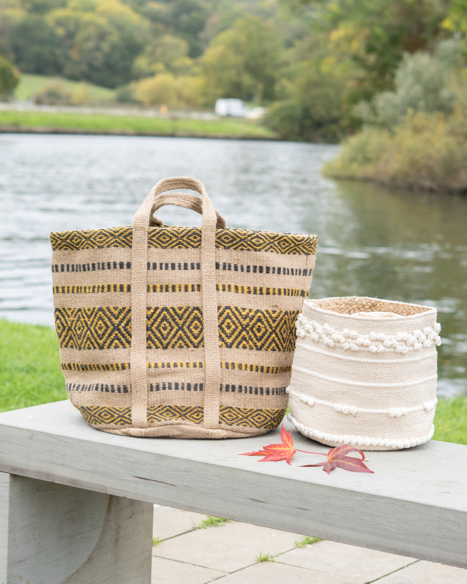 Flaunting grounded charm in its most natural form, this geometric Storage Basket With Handles is ingrained with a sweet touch of rustic beauty. Carrying the goodness of jute, this basket has strong and durable straps. Proudly bearing the hallmark of excellent craftsmanship, this offering has been handwoven by skilled rural artisans of pink city, Jaipur.