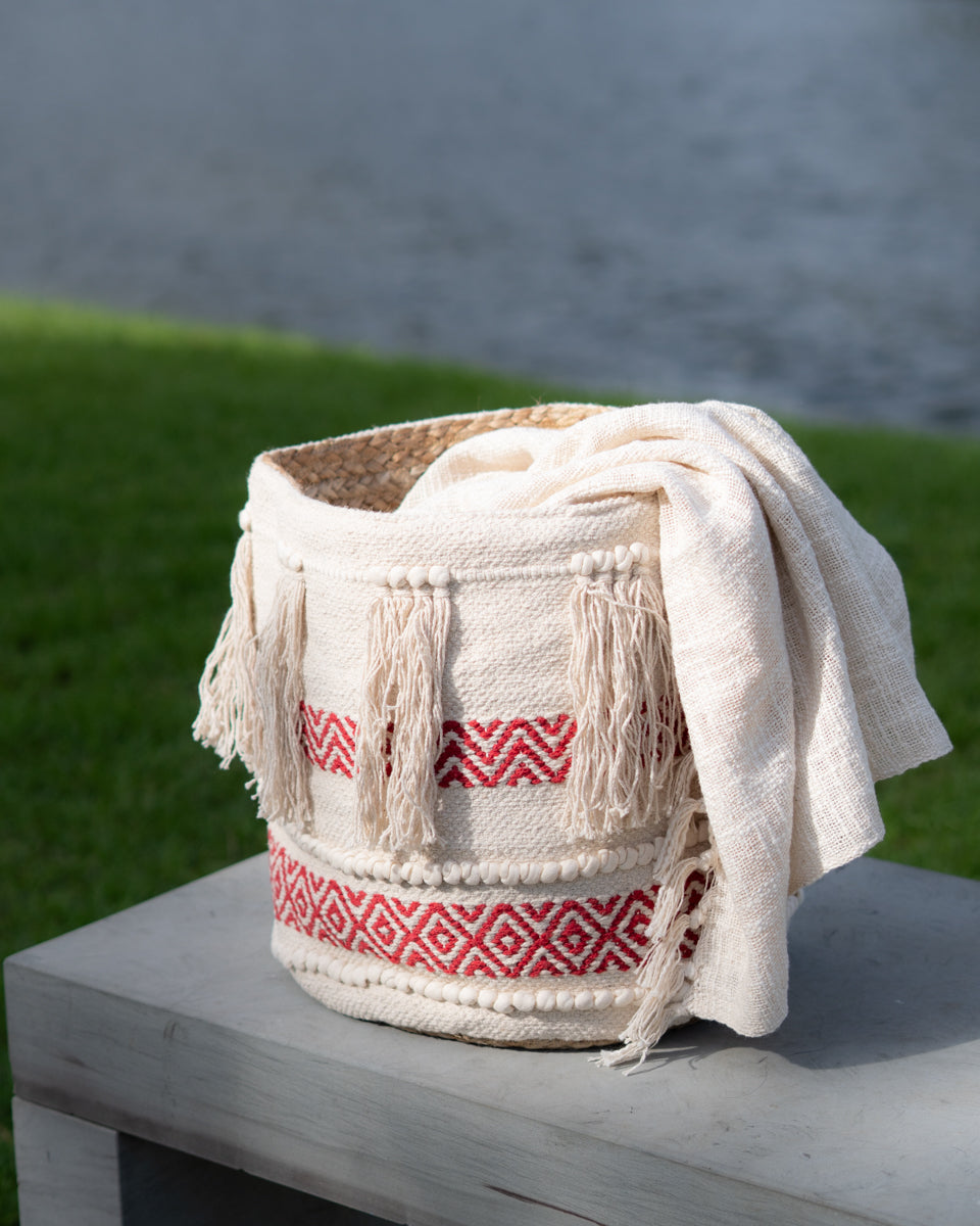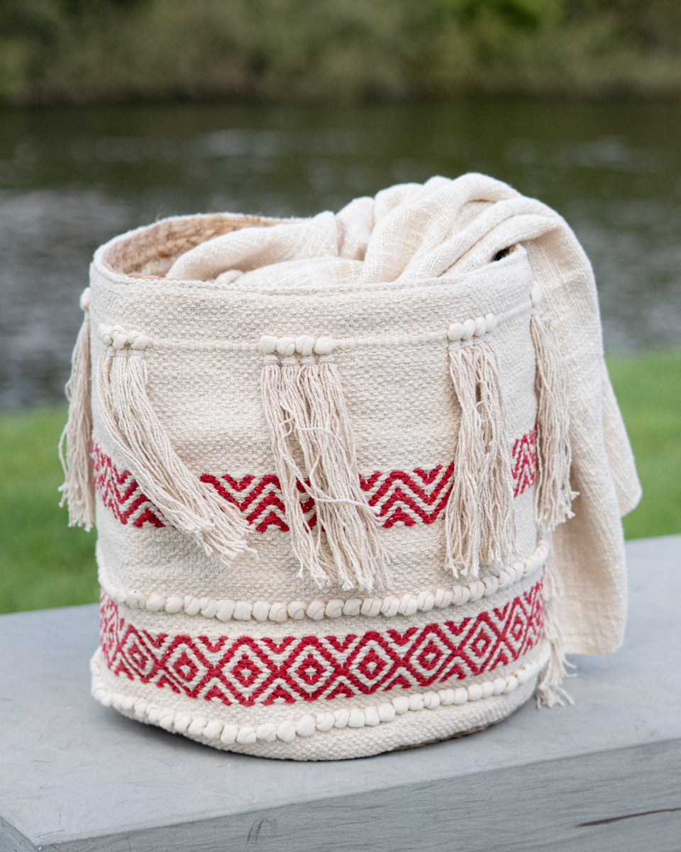 With its minimalist design, the Handwoven Ruby Cotton & Braided Jute Basket fits seamlessly into any room. Its simple yet elegant look makes it a great addition to contemporary spaces. Whether you need extra storage for toys, books, laundry, or blankets, this basket can handle it all. Its open design ensures easy access to your belongings, while its sturdy build makes it reliable for everyday use.