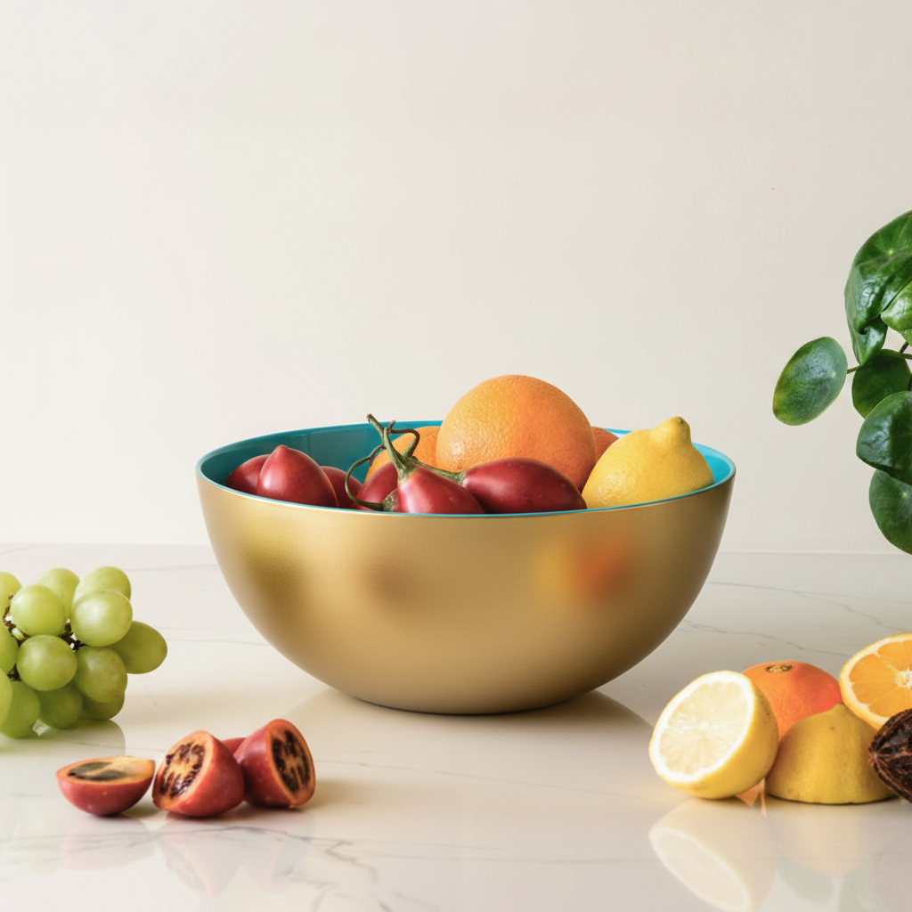 Whether you use it as a kitchen accessory, a serveware essential, or an exquisite piece of home decor, the Lustrous Brass & Blue Metal Spun Bowl brings timeless beauty to your space. Add a touch of handcrafted luxury to your home with this one-of-a-kind brass bowl.