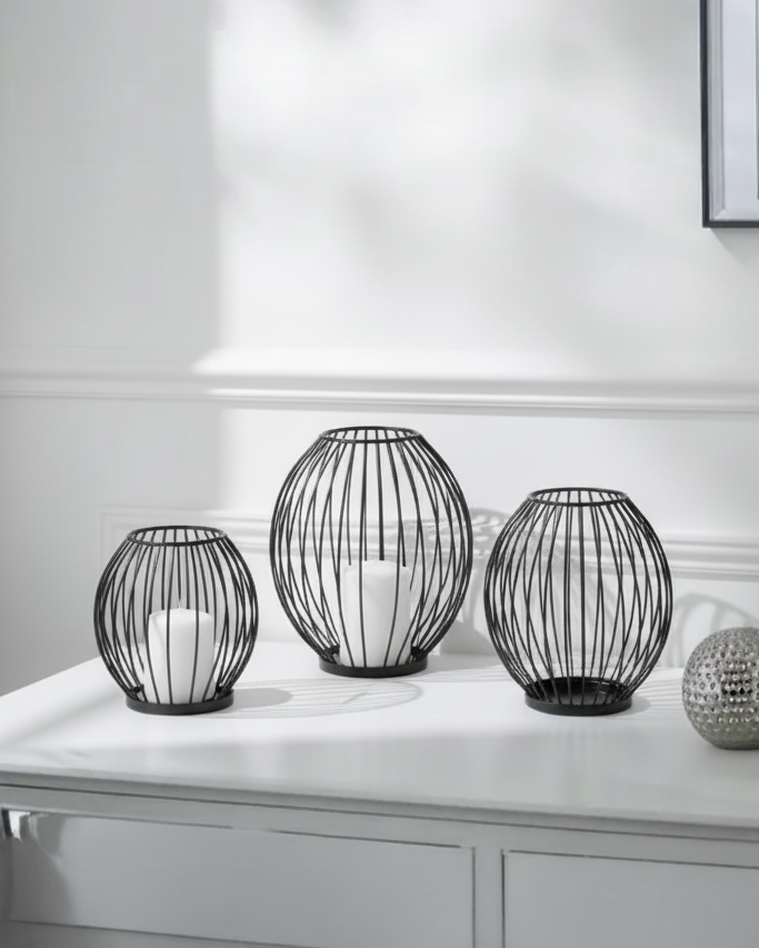 The geometric design of these caged candle holders effortlessly complements a variety of interior design themes. Whether you seek to create a modern black table centrepiece or add a chic touch to your living room or bedroom, these versatile candle holders make a statement while fitting seamlessly into your home decor.