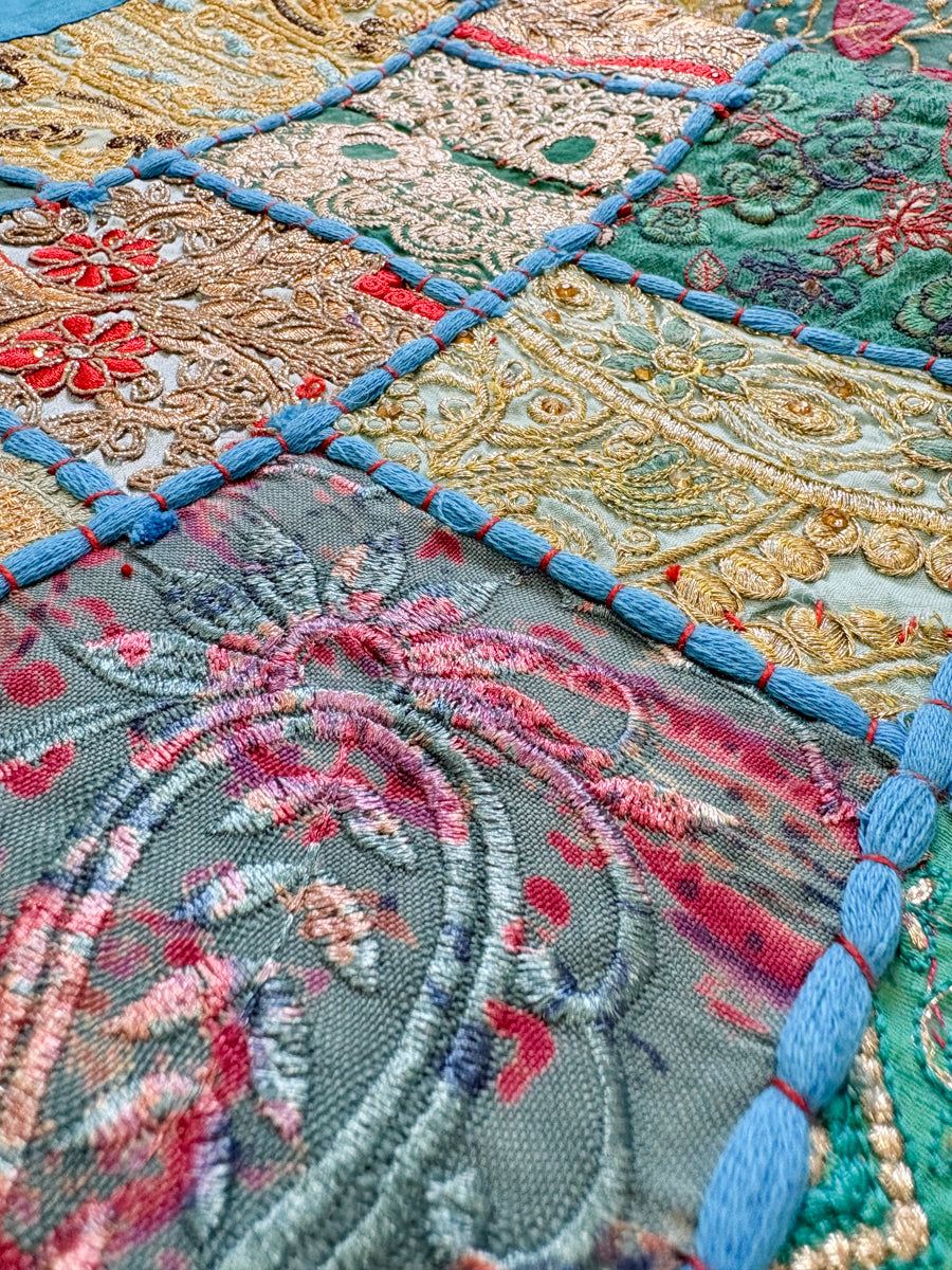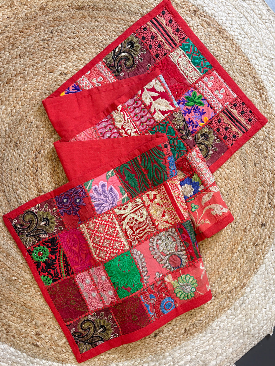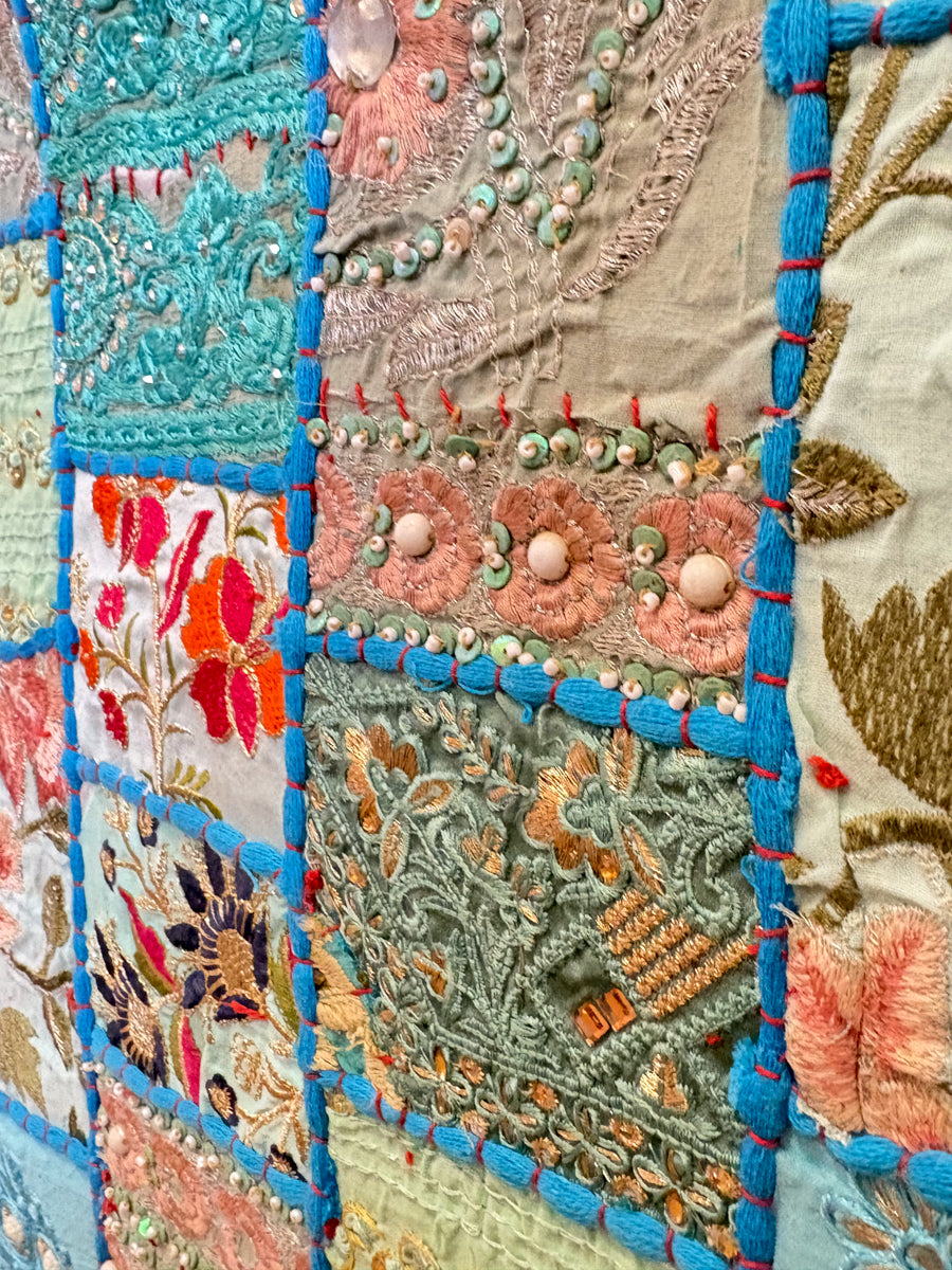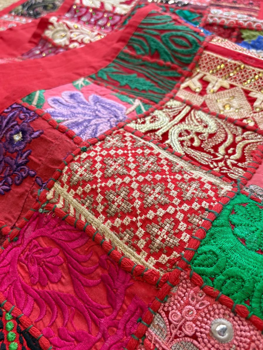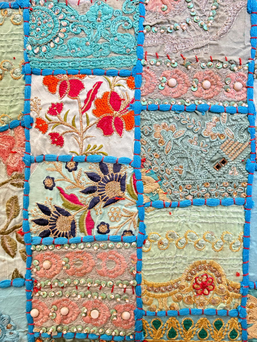 Handcrafted by skilled artisans in Jaipur, India, this bed runner showcases the intricate art of patchwork — a heritage technique passed down through generations. Carefully selected surplus cotton and silk fabrics are stitched together to create a richly textured design, where every panel tells its own story. No two runners are ever the same, making each piece truly one of a kind.
