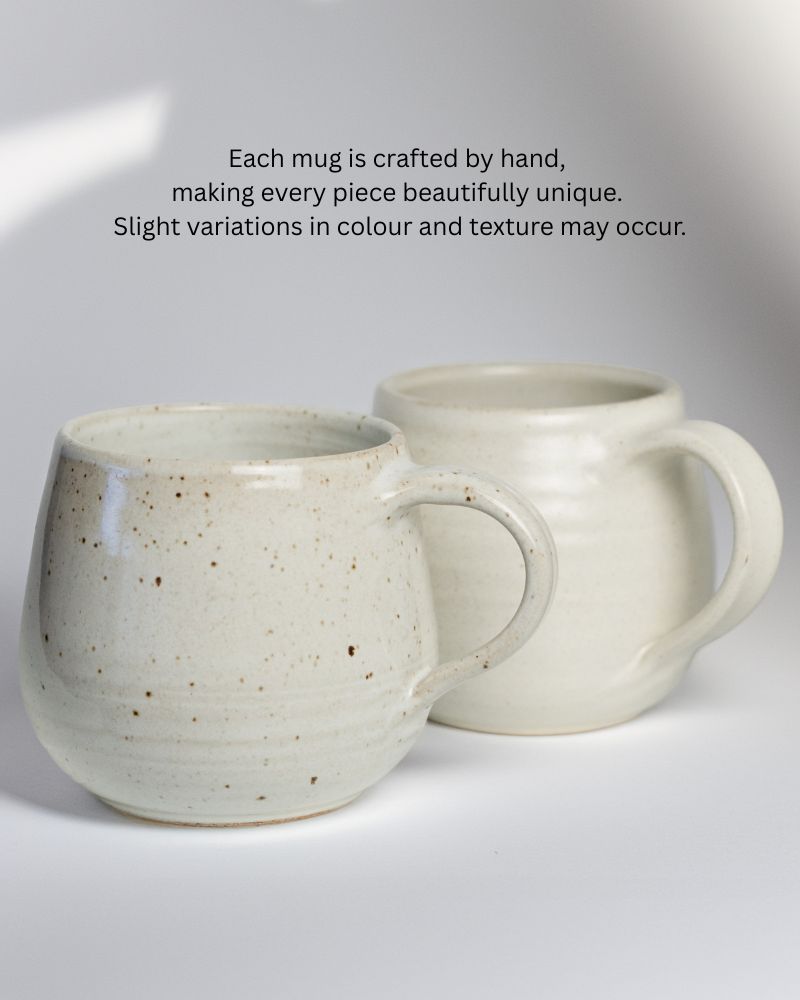 Each mug is meticulously handcrafted by skilled artisans, celebrating the rich tradition of pottery. Crafted in Pondicherry, a region known for its ceramic artistry, this piece is a testament to age-old craftsmanship blended with contemporary minimalism. The speckled stoneware finish, achieved through a natural glazing process, ensures that each mug has a one-of-a-kind aesthetic while remaining sturdy for everyday use.
