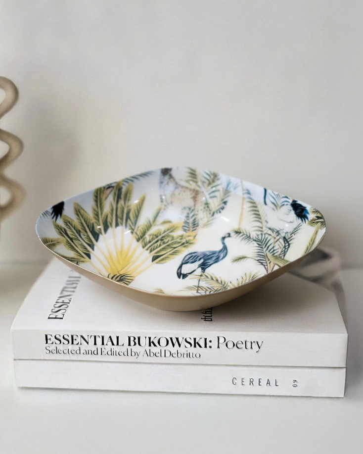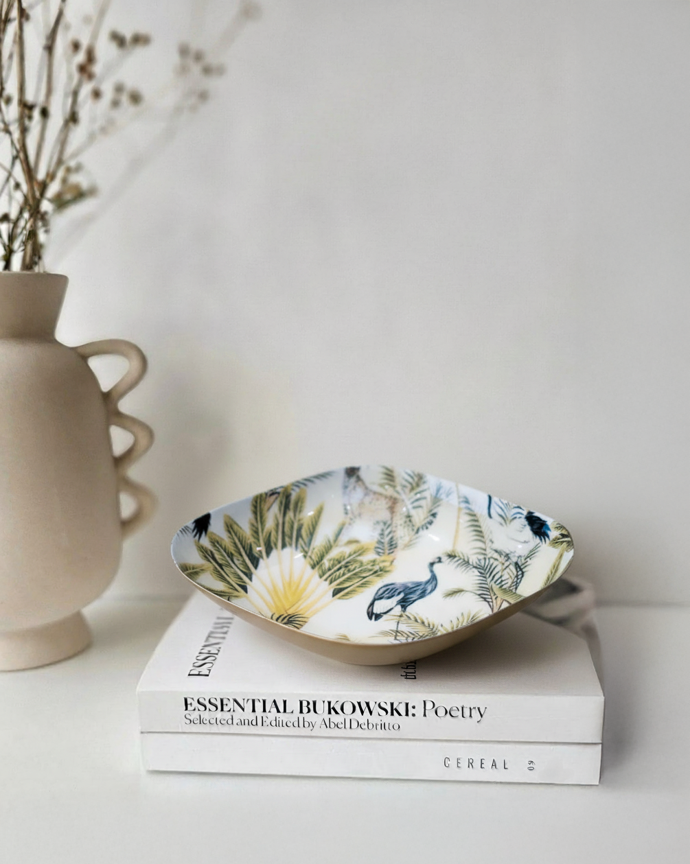 Elevate your home decor with the exquisite Tropical Enamelled Iron Dish in Diamond Shape, a striking fusion of artistry and functionality. Handmade by skilled metal craftsmen from North India, this unique piece showcases meticulous craftsmanship, carefully shaped from durable iron and finished with a luxurious hand-applied enamel coating. Whether used as a statement serveware piece or an eye-catching decorative accent, this dish exudes refined elegance and tropical charm.
